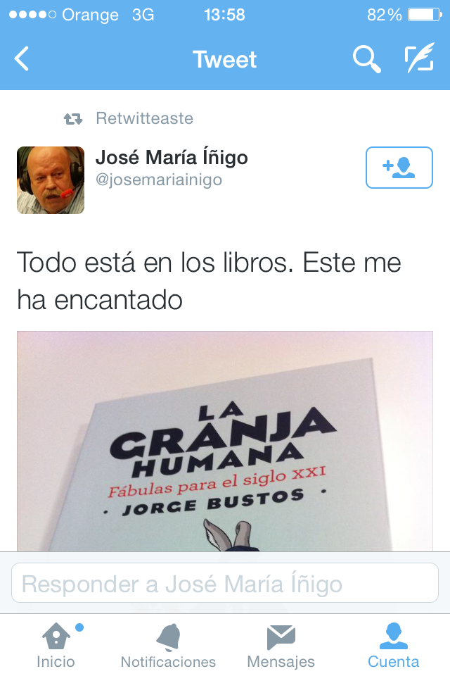 En la granja, Bustos se agarra al «género didáctico» de la fábula [como dice Álvaro Pombo] desde Esopo a Monterroso pasando por La Fontaine y Kafka, para pincharle al mundo moderno y ver qué es lo que le sangra. Aguirre reencarnada en raposa, Rajoy en puerco, Iglesias en león y, al final, todos [no se escape nadie] en la versión más franca y primitiva de nosotros mismos. Una transformación animal, eso sí, sin imprudencias: «La obra de Bustos es reflexiva. Si pensar ya es difícil, hacer pensar a los demás… casi imposible», esboza Pombo. «Él va más allá. Consigue que el lector repiense. Ésta debe ser la tarea cotidiana del mejor periodismo, del inteligente, del afilado».