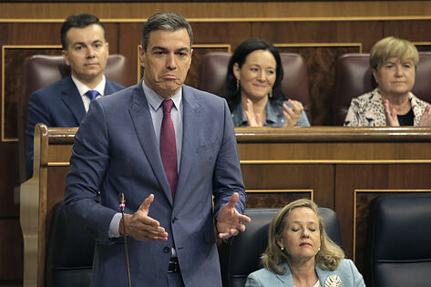Faena de aliño en el ruedo parlamentario en ausencia de Finito de Davos, antaño matador de mucho cartel, hoy cogido por los pitones de las encuestas con dos trayectorias muy feas: la economía y los indultos/chantajes de los separatas. Andaba Pedro Sánchez de gira comercial en el foro del taco, de la guita, de la tela marinera que va faltándole mucho al españolito cabreado, espécimen peligrosísimo para un político en campaña. El terreno de Sánchez frente al toro opositor lo ocuparon dos mujeres: Nadia Calviño y MJ Montero. La misma oscura razón que desata a los tímidos en los bares ha debido de operar en la transformación de las dos ministras del área técnica en arietes desorejados de Ferraz. Las presuntas gestoras se han convertido en activistas: sostienen con una mano el trémulo tinglado gubernamental mientras blanden con la otra el atizador de opositores. Desde la confortable lejanía del monte suizo, el ausente patrón sonríe complacido: Nadia y MJ se baten bravamente en su santo nombre mientras él cambia a pulso el modelo productivo; o sea, mendiga fábricas de microchips.